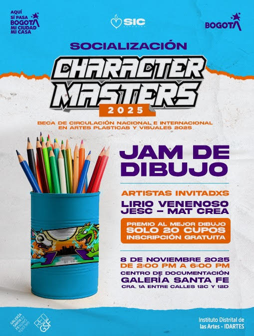 El Centro de Documentación de la Galería Santa Fe será escenario del cierre del Character Masters Tour, proyecto ganador de la Beca de Circulación Nacional e Internacional en Artes Plásticas y Visuales 2025. Esta actividad servirá como espacio de socialización de los aprendizajes y experiencias del proyecto durante su participación en el festival Arte, Barrio y Cultura de Road Paint, en Guayaquil.