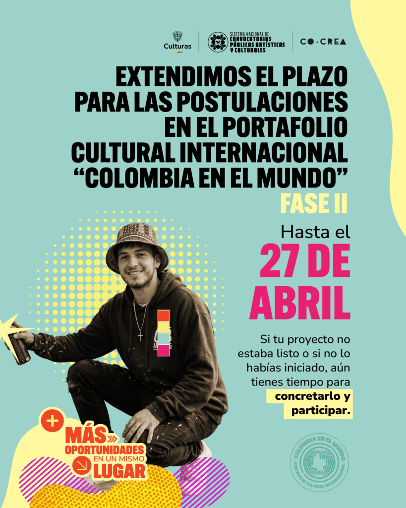 Desde el Ministerio de las Culturas, las Artes y los Saberes tenemos el agrado de compartir con ustedes nuestra apuesta institucional para promover y posicionar las artes y saberes del país en escenarios globales. El Portafolio Cultural Internacional Colombia en el Mundo 2026 se ha consolidado como el principal mecanismo de fomento cultural orientado a […]