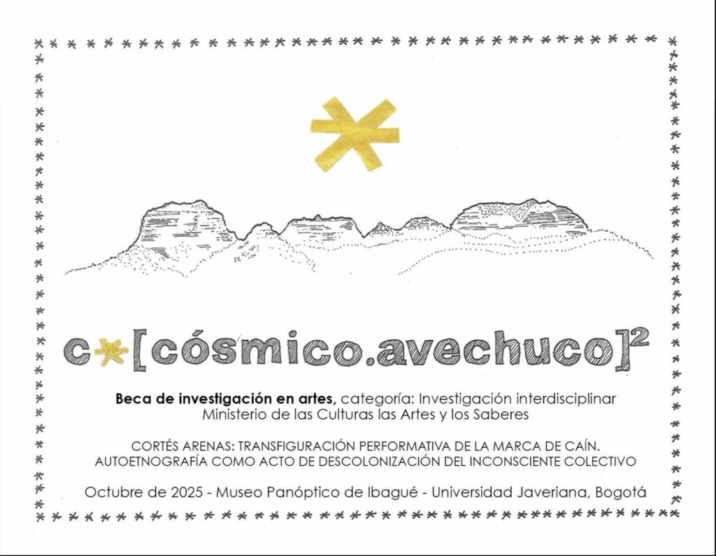 Muestra del proyecto C[cósmico.avechuco]²El Aula Múltiple será escenario de la muestra final de C[cósmico.avechuco]², un proyecto de investigación que cruza el arte, el cuerpo y lo performativo para explorar nuevas formas de presencia y relación con lo cósmico. Octubre 23, 2025 – 7:00 p. m. Aula Múltiple – Facultad de Artes¡Entrada libre! Una experiencia escénica que expande los límites entre investigación y creación. ![]() |