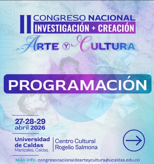 La Facultad de Artes y Humanidades de la Universidad de Caldas tiene el gusto de invitarlos al II Congreso Nacional de Investigación + Creación en Arte y Cultura, que se realizará los días 27, 28 y 29 de abril de 2026 en el Centro Cultural Rogelio Salmona, Manizales. En este mensaje les compartimos la programación oficial del evento, junto con el enlace de registro para participar como asistentes.