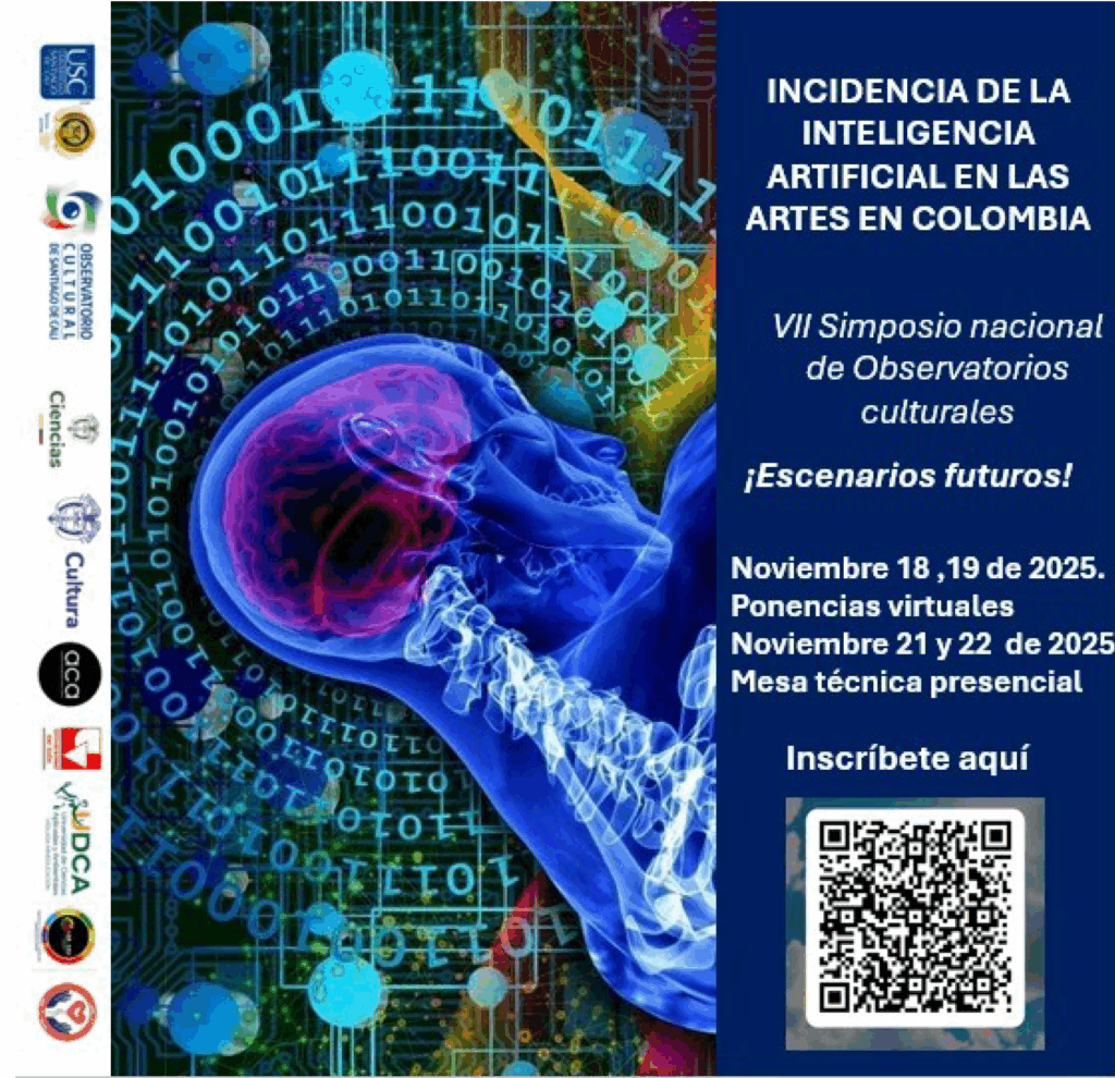 la invitación de la Universidad Santiago de Cali a participar en el VII SIMPOSIO NACIONAL DE OBSERVATORIOS CULTURALES Y CONEXOS – INCIDENCIA DE LA INTELIGENCIA ARTIFICIAL EN LAS ARTES EN COLOMBIA, que nos comparte y hace extensiva la maestra Clara Mónica Zapata.