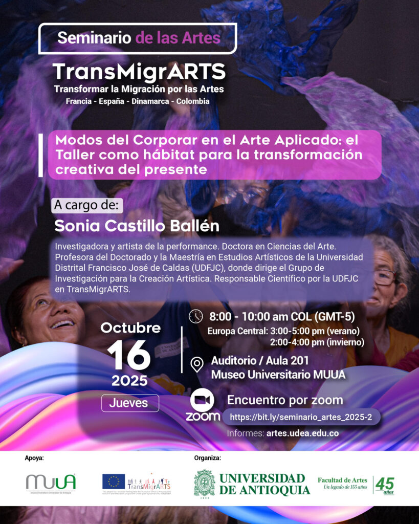 El ciclo de conferencias del Seminario de las Artes – TransMigrARTS, se realiza todos los jueves desde el 28 de agosto e irá hasta el 4 de diciembre de 2025.