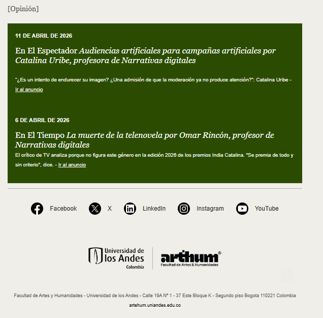UNIANDES – Boletín semanal ArteHum