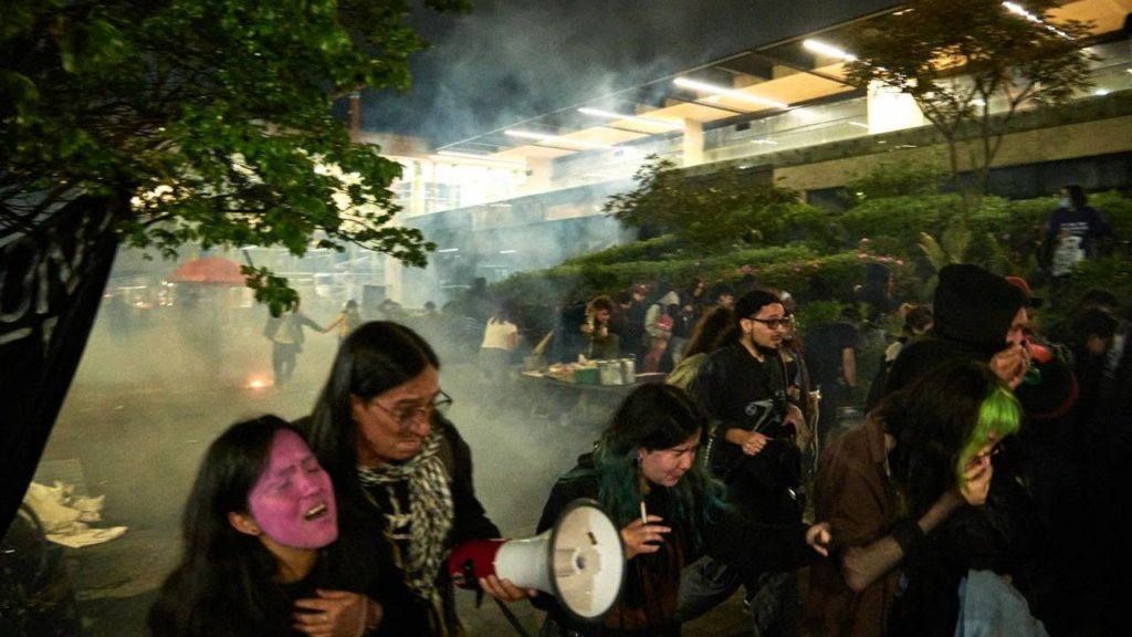Un plantón pacifico contra Expodefensa en Bogotá termina con la UNDMO lanzando gases lacrimógenos y con dos heridos